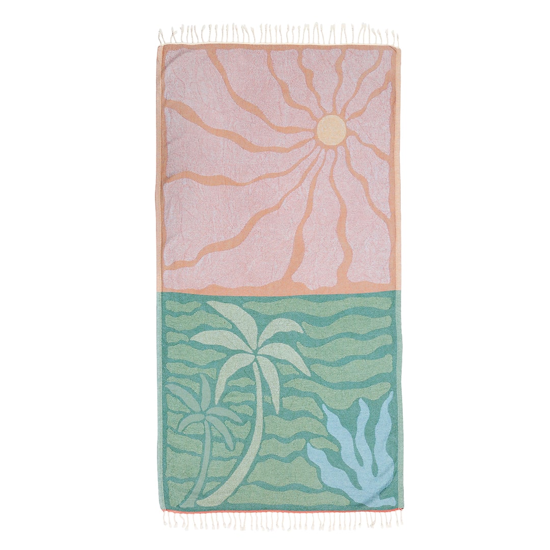 Le coton turc absorbe également l'eau rapidement et efficacement, ce qui constitue un autre avantage de nos serviettes par rapport à une serviette-éponge standard pour se sécher au bord de l'océan après une longue journée de surf ou de natation.